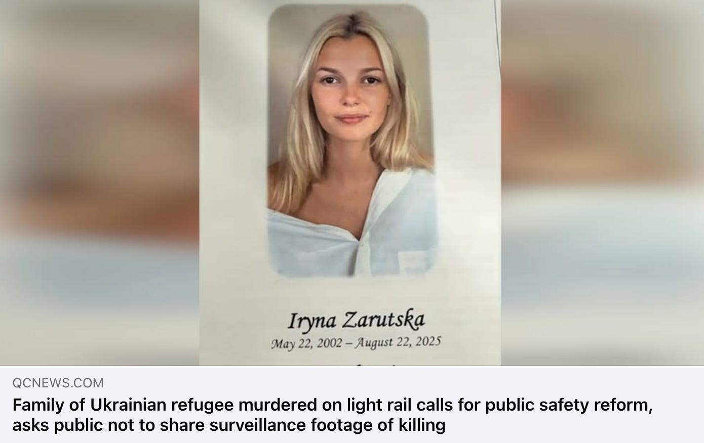 Predictably, Iryna’s ‘family’ have been calling for ‘reforms’ - ie problem, reaction, solution - and the standard ‘Don’t share the video’ plea has been rolled out. If they didn’t want the video to be published, their attorney would have demanded that from the authorities (remember, it was the authorities who released it and all the different camera angles), on the grounds that it could prejudice a future trial and was insensitive/ ‘offensive’ to them.