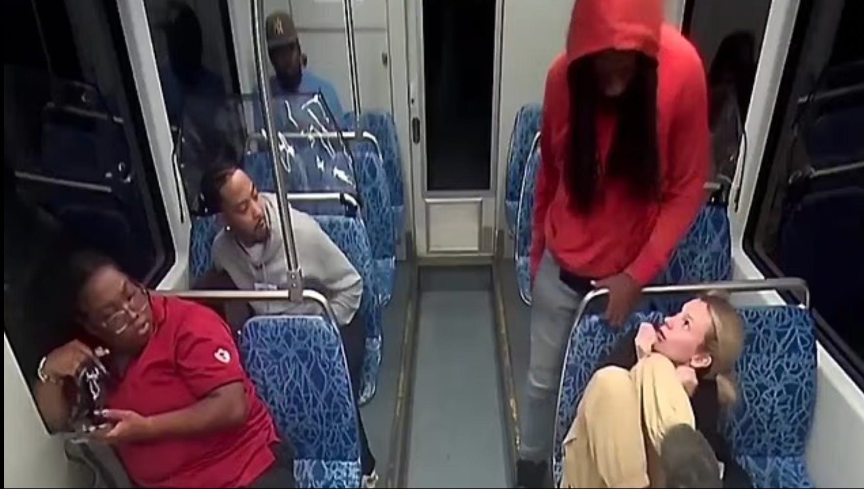 The reason the rest of the passengers don’t react is because they’re probably all in on it.