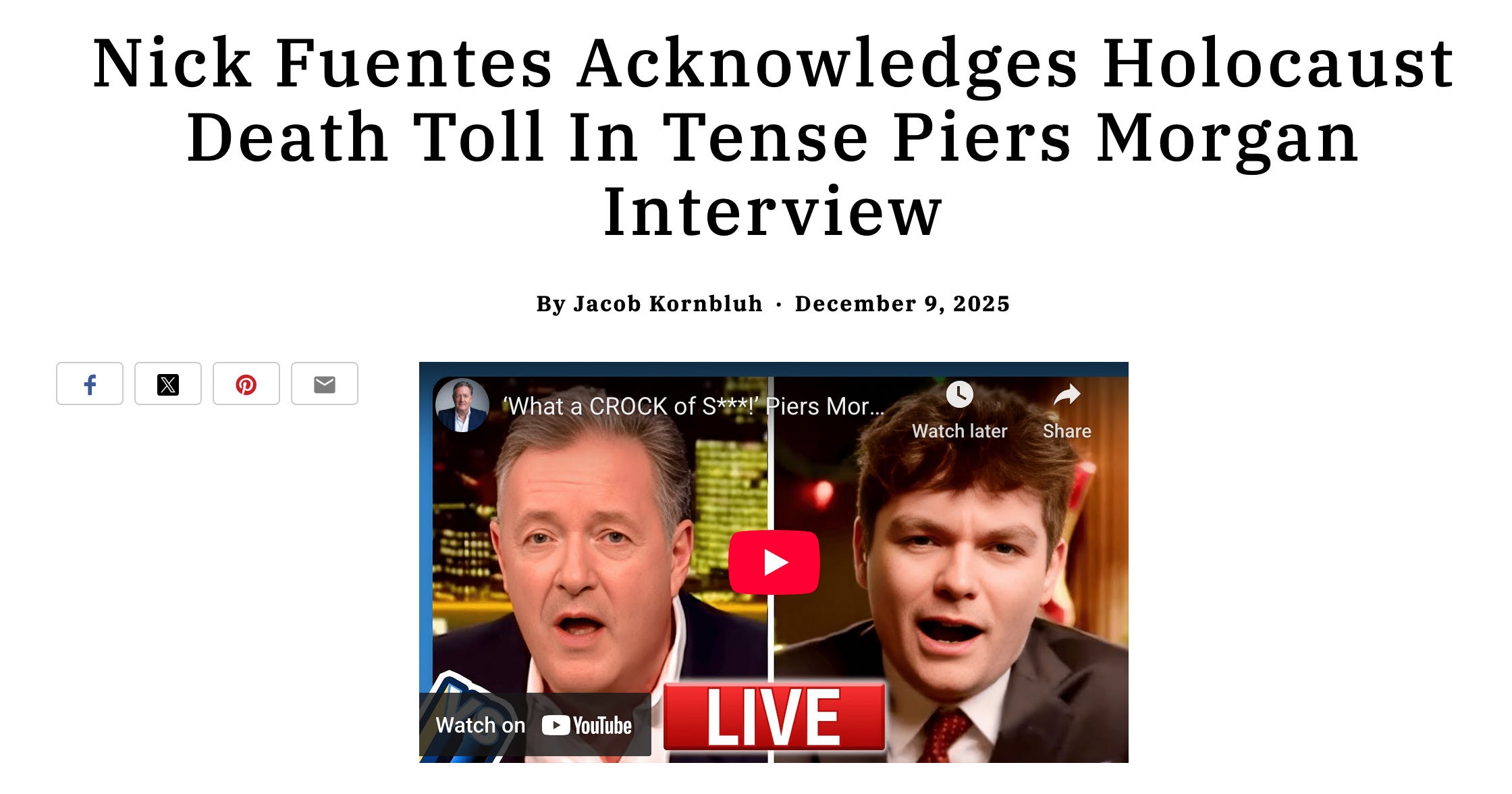 As Morgan reaches a lot of normie goy , it was an opportunity for Fuentes to drive home the lies about the gas chambers but instead he spewed out the official narrative with a straight face. The cover for this is that it was his usual sarcasm and he was only kidding. But there’s no sign of that during the ‘interview’, and if there was, Morgan’s dumbed-down viewers wouldn’t have been able to discern it. Do we need more proof that he is a shill for the Jews? Piers wouldn’t entertain any other type of guest.