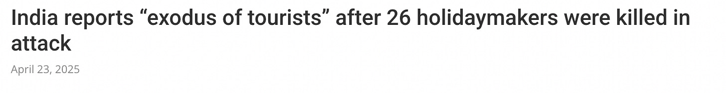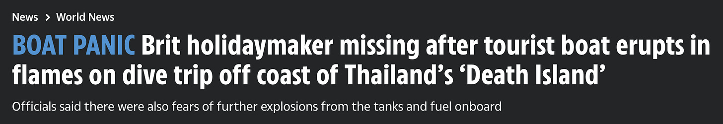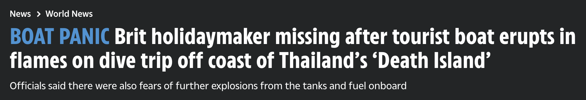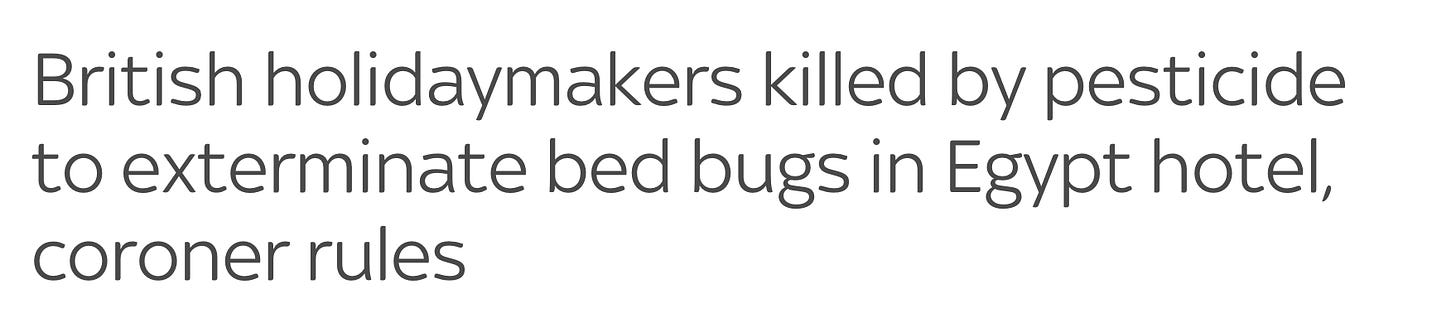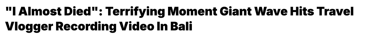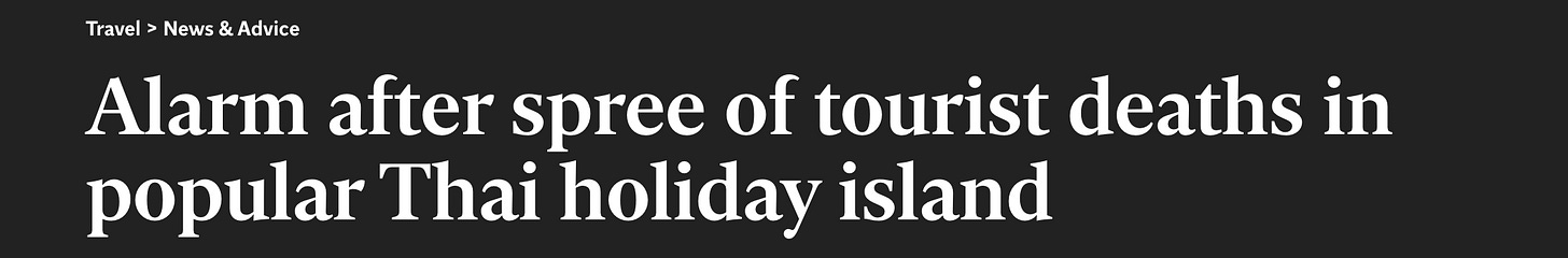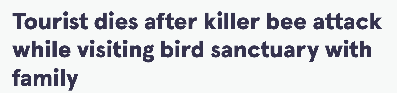 And throughout the year, there’s been a relentless stream of fear porn about the dangers of going on holiday from killer bee attacks to deadly waves. Here’s just a short sample: