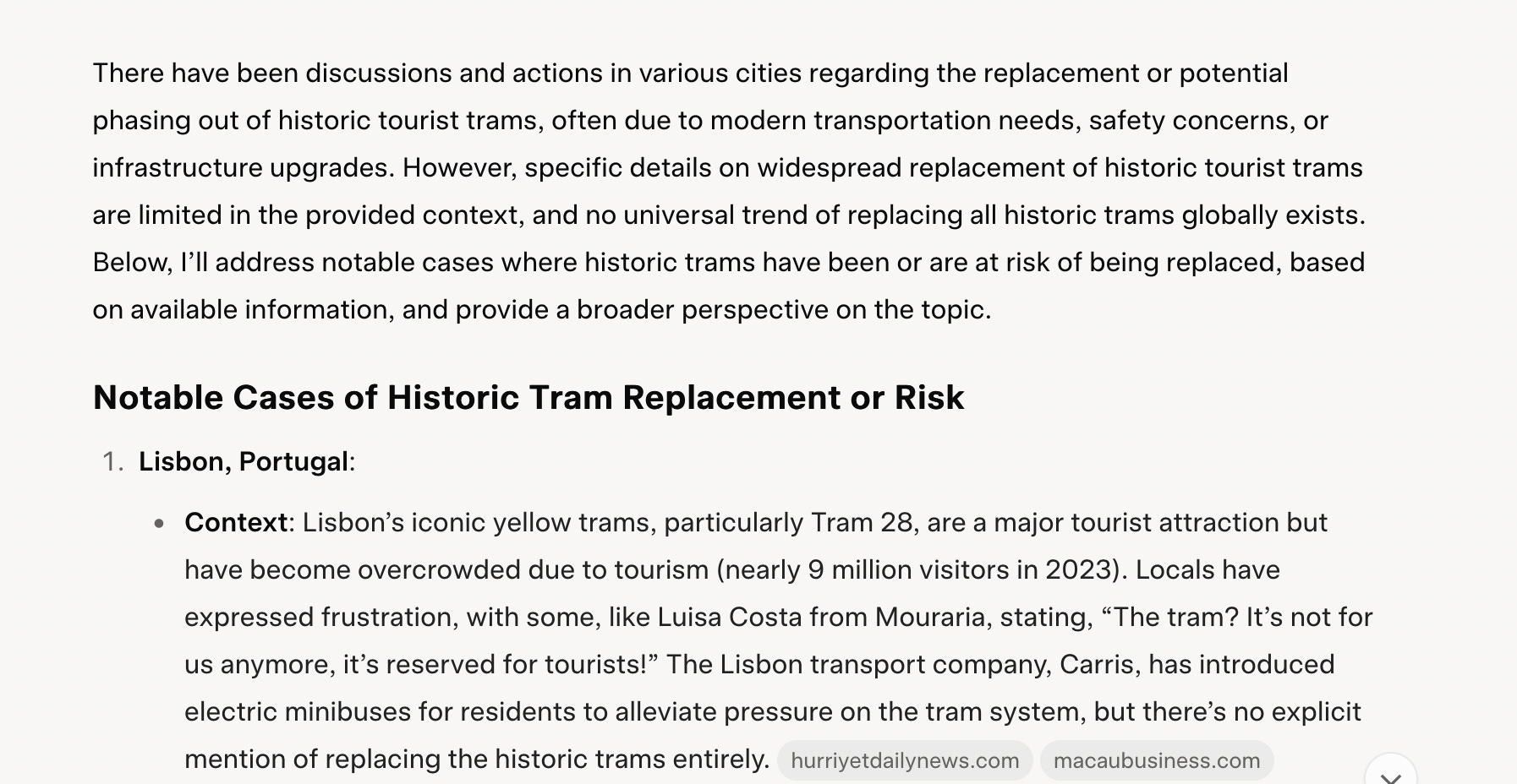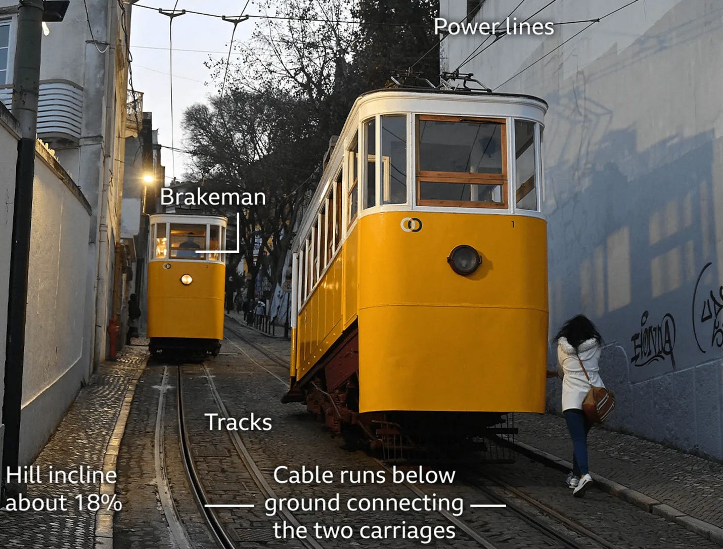 It’s very convenient that the virtually invincible trolley tram that trundles up and down the hills of Lisbon hundreds of times a week without incident would suddenly go into freefall just when the transport gods are looking to get rid of them. Here’s what AI has to say about their replacement: